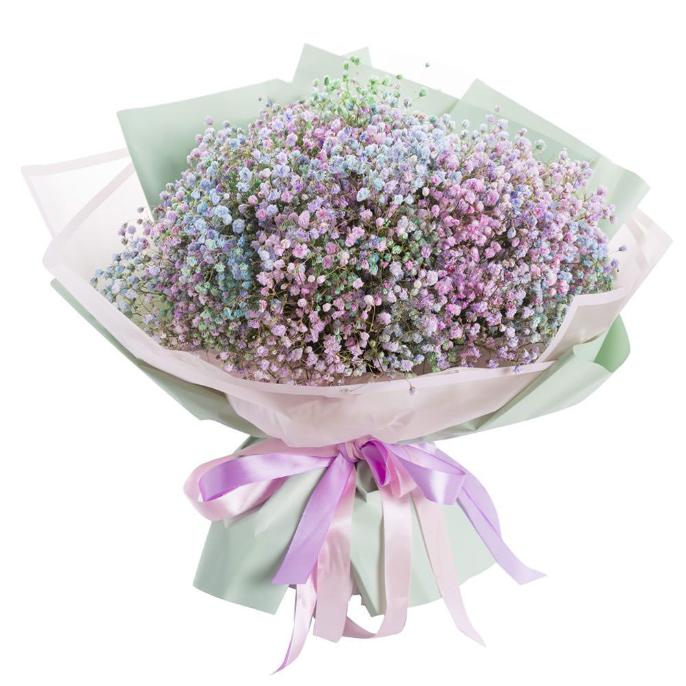 Гипсофила розовая, голубая, зеленая. Упаковка (лента, пленка, крафт, сетка, пленка матовая)