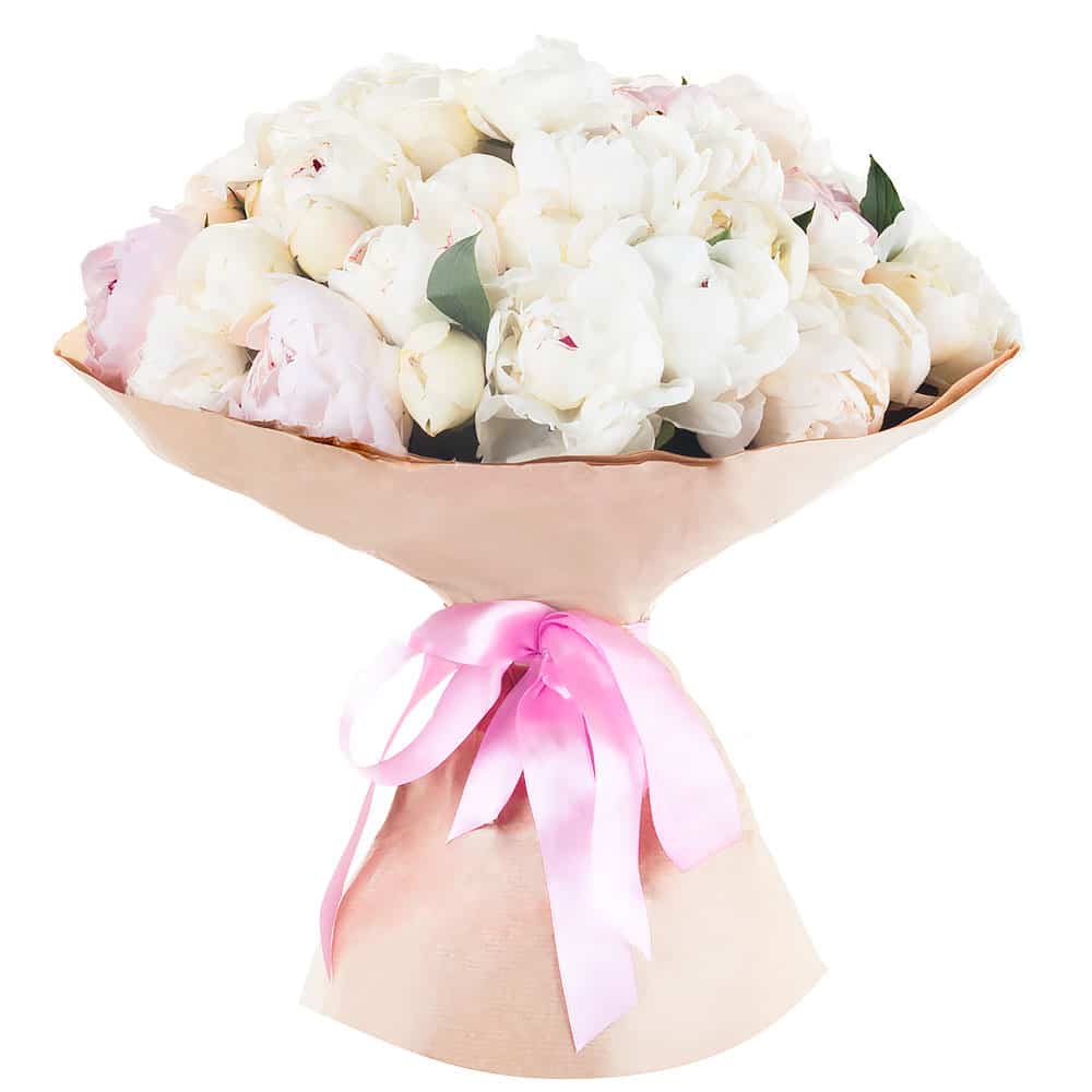 Пион белый. Упаковка (лента, пленка, крафт, сетка, пленка матовая)