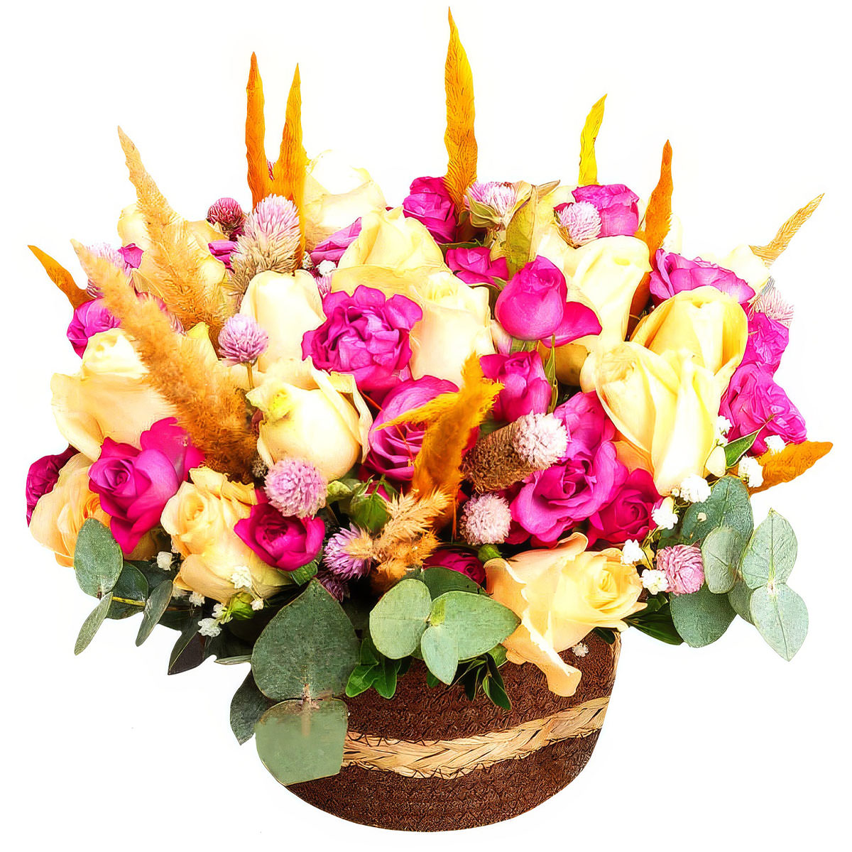 Корзина с цветами «Романтическое свидание» с доставкой по г Саянск: вы можете заказать букет в цветочном гипермаркете «Флормания» по цене от 3790 руб.