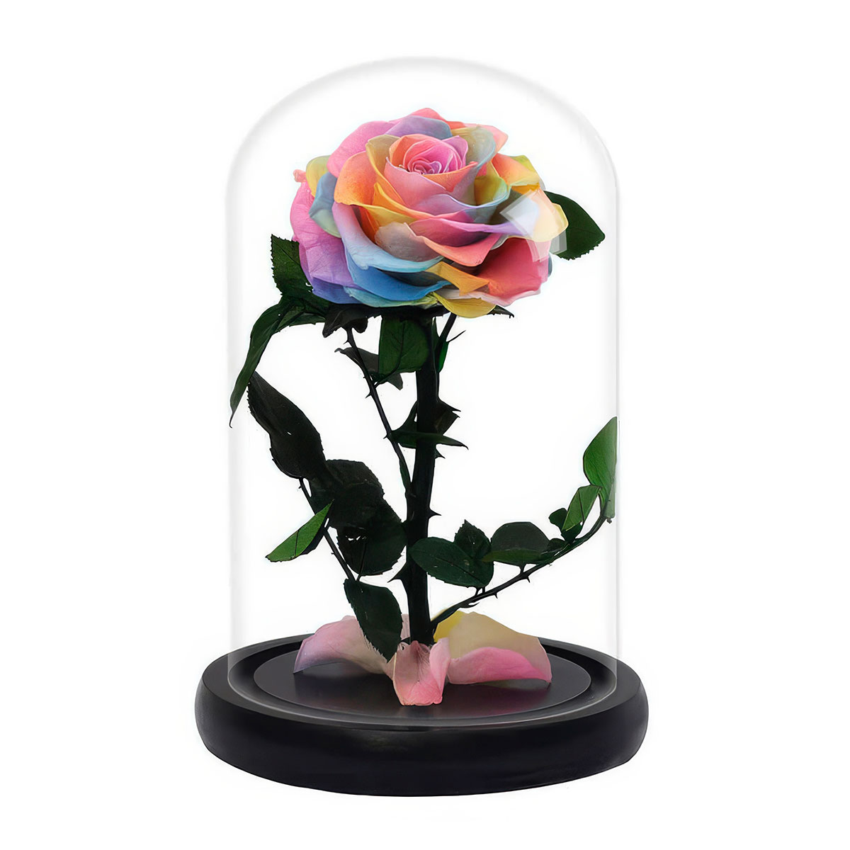 Стабилизированная вечная роза в колбе радужная.