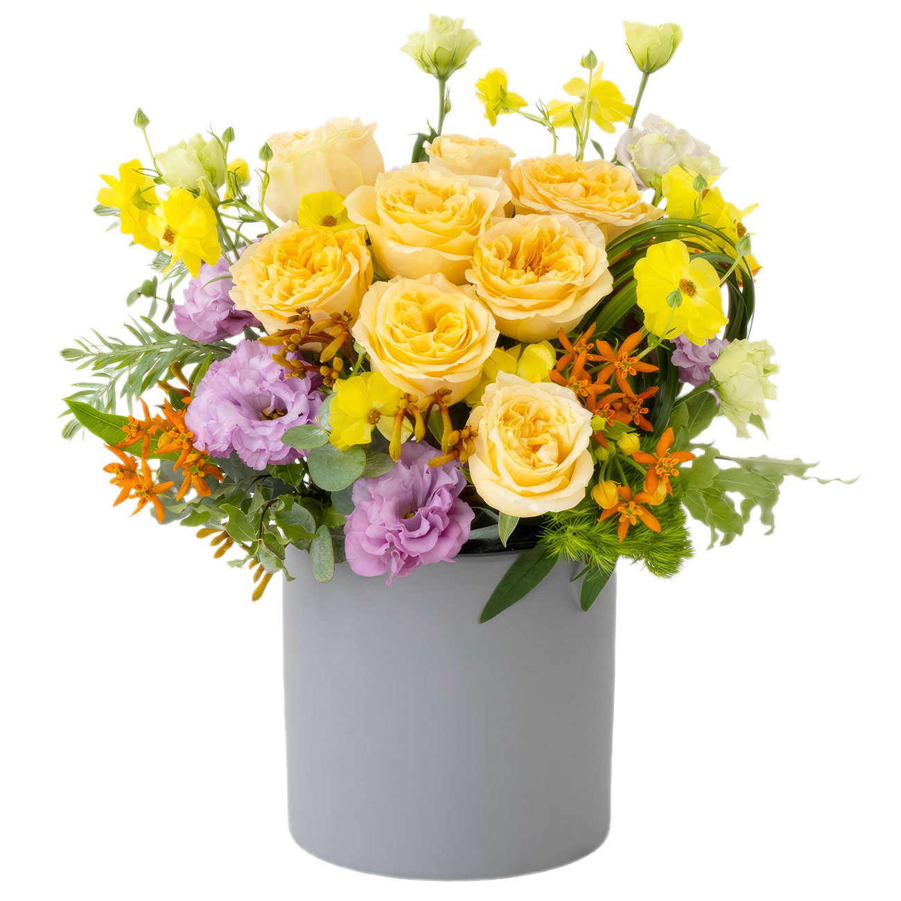 Цветы в коробке «Яркость красок» с доставкой по г Саянск: вы можете заказать букет в цветочном салоне «Флормания» по цене от 3290 руб.