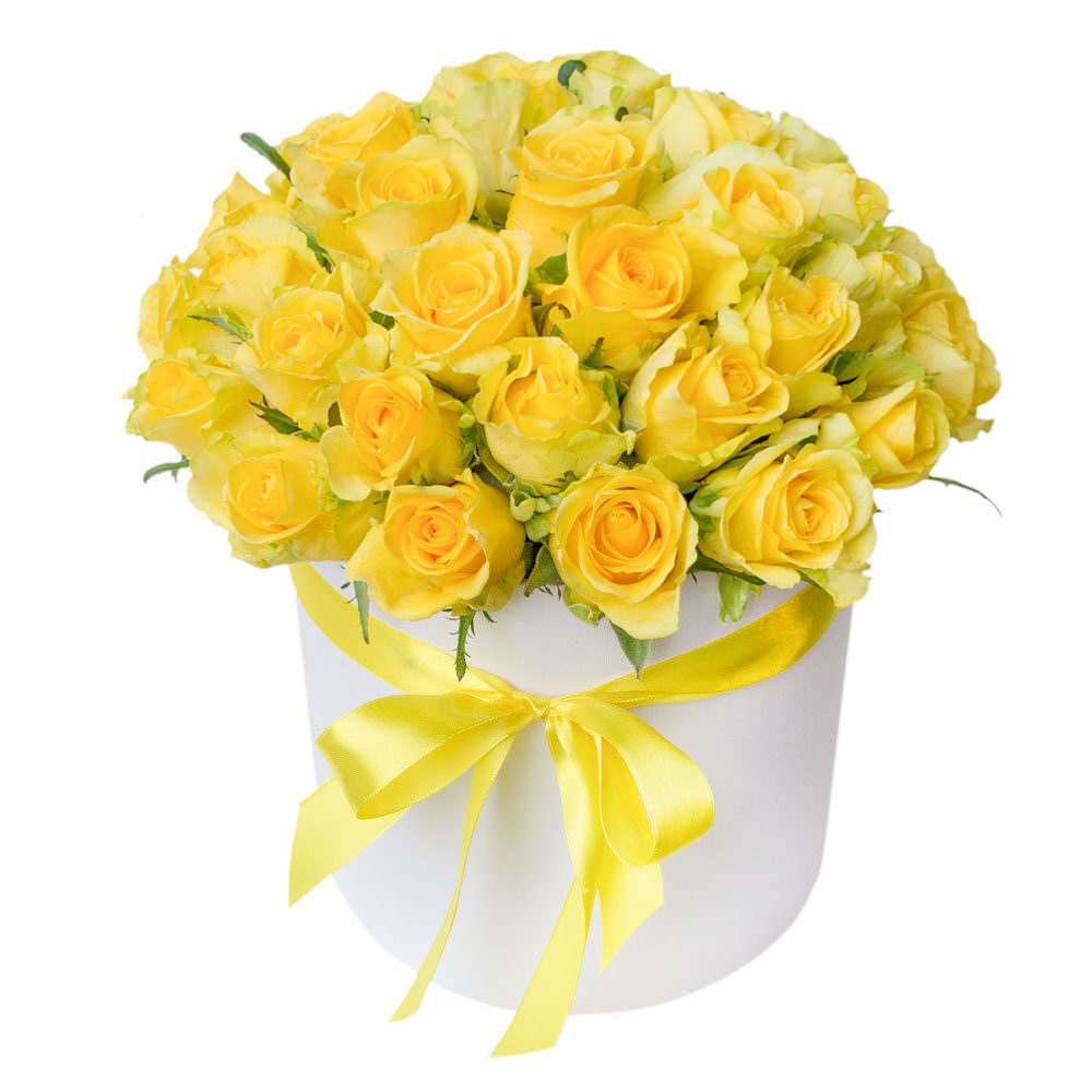 Цветы в коробке «Желтые Розы» с доставкой по г Саянск: вы можете заказать букет в гипермаркете цветов «Флормания» по цене от 3290 руб.